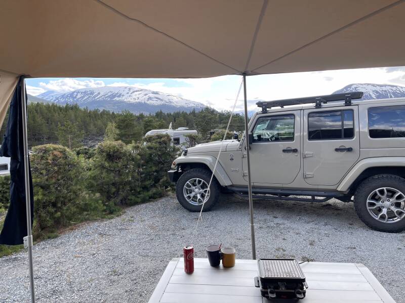 Der Dønfoss Camping hat eine spektakuläre Aussicht auf die Berge und den gletschergrünen Fluss. Verschiedene Stellplätze liegen direkt am Wasserfall. Es gibt aber auch ruhigere Stellplätze abseits des Flusses, von denen aus man trotzdem einen schönen Blick auf die Berge und die umliegende Landschaft hat. Einige der Stellplätze bestehen aus Kies und einige aus Gras. Der Campinplatz hat uns sehr gut gefallen, es war wie in einer kleinen Westernstadt. Der Wasserfall ist wunderschön und die Sanitäranlagen sauber und neu. Wir würden diesen Campingplatz jederzeit wieder besuchen.