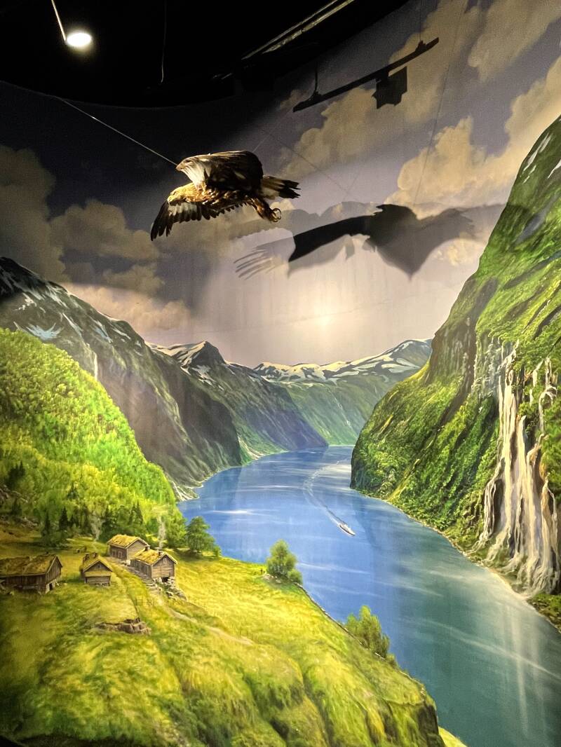 Das Norwegische Fjordzentrum (Norsk Fjordsenter) befindet sich im Dorf Geiranger am Ufer des Geirangerfjords in Norwegen. Es ist ein Informationszentrum und Museum, das sich der Geschichte, Geologie, Flora, Fauna und Kultur der Fjordregionen Norwegens widmet. Das Zentrum bietet den Besuchern interaktive Ausstellungen, informative Displays, audiovisuelle Präsentationen und Exponate, die die einzigartige Natur und die geologische Entstehung der Fjorde veranschaulichen. Besucher können mehr über die Formation und Entstehung der Fjorde, die Tier- und Pflanzenwelt der Region, die traditionelle Lebensweise der Einheimischen sowie die Rolle der Fjorde in der norwegischen Geschichte und Kultur erfahren. Das Zentrum ist ganzjährig geöffnet und bietet sowohl individuellen Besuchern als auch Gruppenführungen an. Es gibt auch ein Café oder eine Snackbar sowie einen Souvenirladen, in dem Besucher regionale Produkte und Andenken kaufen können. Das Norwegische Fjordzentrum ist eine lohnenswerte Anlaufstelle für Besucher, die mehr über die faszinierende Welt der Fjorde Norwegens erfahren möchten und sich für die einzigartige Natur und Kultur dieser Region interessieren.