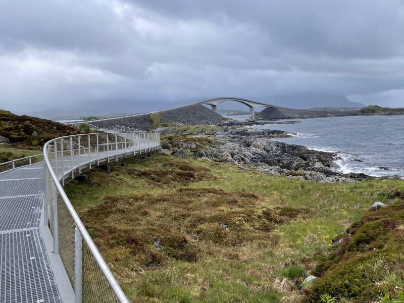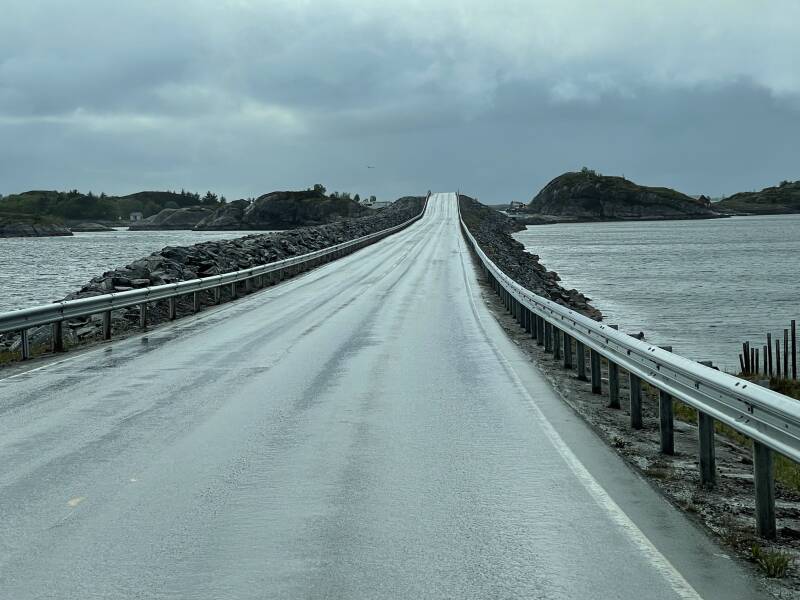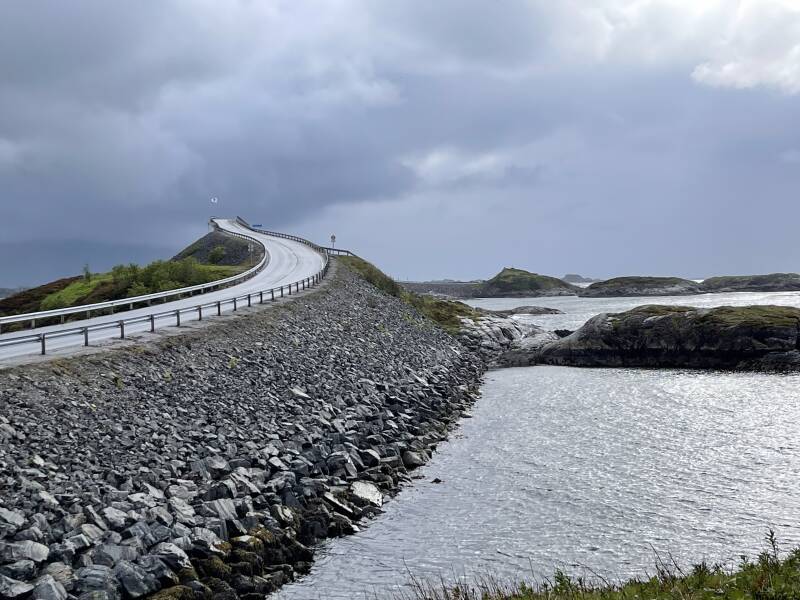 Die Atlantikstraße, auch bekannt als Atlanterhavsveien auf Norwegisch, ist eine spektakuläre Küstenstraße in Norwegen, die sich entlang der norwegischen Atlantikküste zwischen den Städten Kristiansund und Molde erstreckt. Diese beeindruckende Straße erstreckt sich über eine Strecke von etwa 8,3 Kilometern und führt über sieben Brücken, die sich über verstreute Inseln und Felsen im Atlantischen Ozean erstrecken. Die Atlantikstraße ist bekannt für ihre atemberaubende Landschaft und die spektakulären Ausblicke auf das Meer und die umliegenden Inseln. Die Straße windet sich durch eine malerische Küstenlandschaft, die von steilen Felsklippen, schroffen Inseln und wilden Meeresströmungen geprägt ist. Die Architektur der Brücken ist bemerkenswert und fügt sich harmonisch in die natürliche Umgebung ein. Die Atlantikstraße ist nicht nur ein technisches Meisterwerk, sondern auch ein beliebtes Touristenziel und eine beliebte Route für Autofahrer, Motorradfahrer und Fahrradfahrer. Die Panoramablicke entlang der Strecke ziehen Besucher aus der ganzen Welt an, besonders bei Sonnenuntergang, wenn die Farben des Himmels und des Meeres eine atemberaubende Kulisse bieten. Entlang der Atlantikstraße gibt es auch mehrere Rastplätze und Aussichtspunkte, die Besuchern die Möglichkeit bieten, anzuhalten und die Aussicht zu genießen. Einige der bekanntesten Aussichtspunkte entlang der Strecke sind der Storseisundet-Brückenaussichtspunkt und der Eldhusøya-Aussichtspunkt. Die Atlantikstraße ist nicht nur eine beliebte Touristenattraktion, sondern auch eine wichtige Verkehrsverbindung, die die Küstengemeinden miteinander verbindet. Sie wurde in den 1980er Jahren erbaut und hat seitdem nicht nur den Verkehr erleichtert, sondern auch zu einem Symbol für die Schönheit und die technische Ingenieurskunst Norwegens geworden. Insgesamt ist die Atlantikstraße eine der spektakulärsten Küstenstraßen der Welt und ein absolutes Muss für alle, die Norwegens beeindruckende Landschaft und Architektur erleben möchten.
