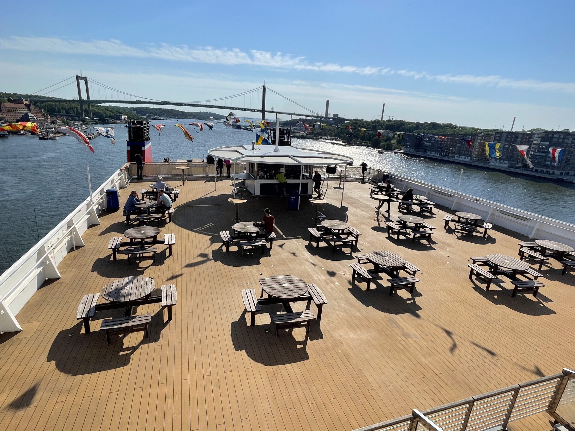 Die Fähre selbst ist modern und gut ausgestattet, mit verschiedenen Kabinenkategorien, Restaurants, Geschäften und Unterhaltungsmöglichkeiten. Während der Überfahrt kannst du die Aussicht von den Außendecks genießen oder dich in den Innenbereichen entspannen, die oft mit großen Panoramafenstern ausgestattet sind, um den Blick auf das Wasser und die vorbeiziehende Küstenlandschaft zu ermöglichen. Unsere Lieblingsreiseroute, man kann von Göteborg aus direkt über die E45 in den Norden von Schweden gelangen. Haustiere sind auf der Fähre auch erlaubt, es gibt spezielle Kabinen wenn man mit Haustieren reist und auf Deck 7 gibt es eine kleine Grünfläche damit die Hunde ihr Geschäft erledigen können. Die Fähre legt Abends um 17:45 Uhr in Kiel ab und ist Morgens um 09:15 in Göteborg. Es gibt die Standart Kabinen, wir buchen jedoch immer die luxuriöseren Zimmer bei denen auch Morgens das Frühstück und Getränke während des Aufenthalts inklusive sind. Es gibt auch 2 Zimmer auf jedem Schiff welche ein Whirlpool im Nebenzimmer haben. Auf den Fotos sieht man diese Kabinen da wir noch nicht in einer Standart Kabine übernachtet haben. Das Essen im Restaurant ist auch sehr lecker.